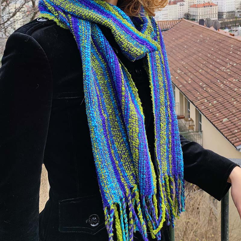 Hand-woven, this Baby Alpaca pure wool scarf is soft, warm and fluffy while being very light.