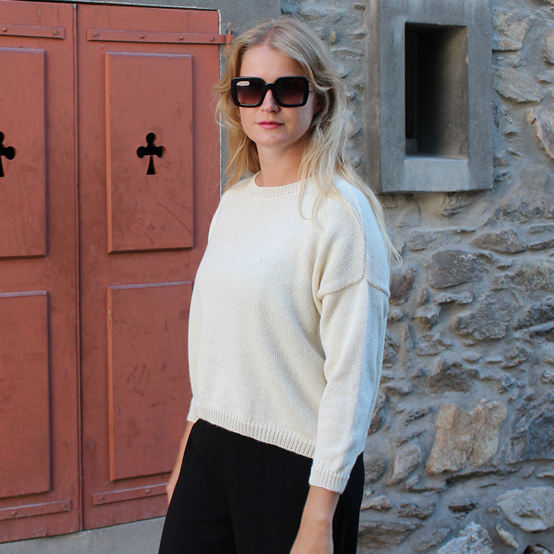 This alpaca sweater is proposed here in natural white, the flagship color of our collection.