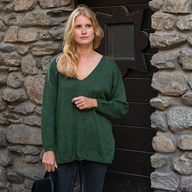 Ce pull alpaga pourra se porter facilement, avec son décolleté V très féminin.